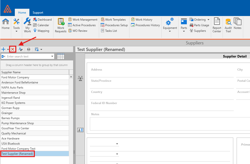 5. The newly deleted Supplier will no longer be accessible from inside of Antero.