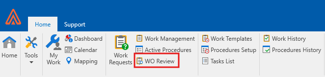 Move to Review - Once a work order is completed and downloaded from Antero Mobile it will be placed in the Work Order Review Tab.
