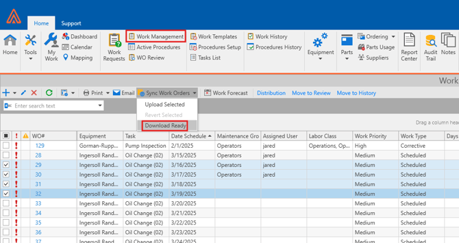Once again click on Sync Work Orders, but this time select the Download Ready option.