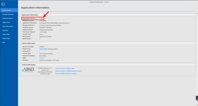 Note: The installed version on the server may not be the most recent, so it is best practice to check a known working version of Antero.