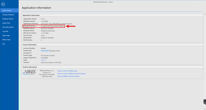 In the "Application Information" page which can be accessed by pressing file or the Antero Icon you will see a "Storage Directory", This will likely be a shared network drive.