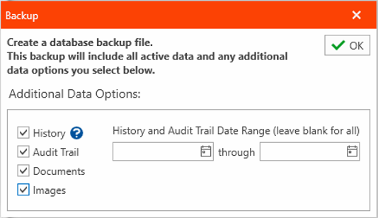 Note: If you want to do a full backup and restore, please make sure you select all of the boxes, and leave the date range blank as shown in the picture below.