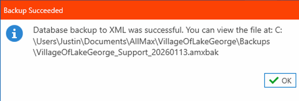 After the Backup is finished, you will receive a filepath location where the backup will be stored as shown below.