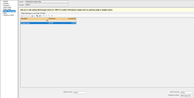 1. Industry Water Discharge provides users the ability to document average discharge flows coming from the production process and totals all discharges throughout the Industry.
