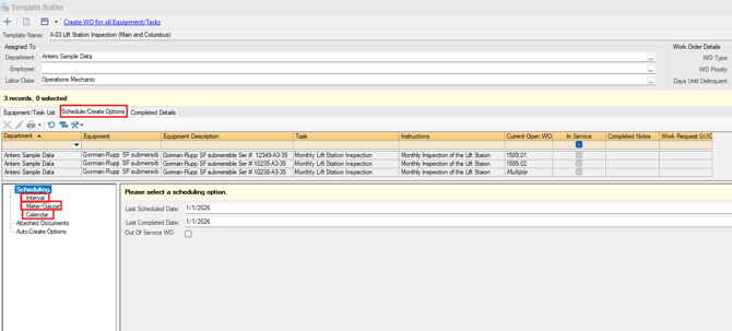 Calendar Scheduling allows you to schedule work orders based on specific days of the week or defined calendar dates.